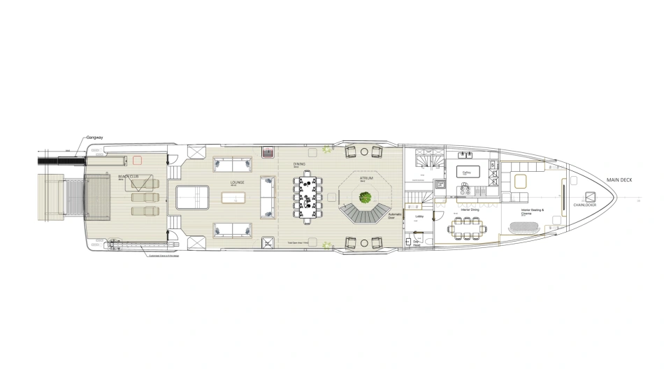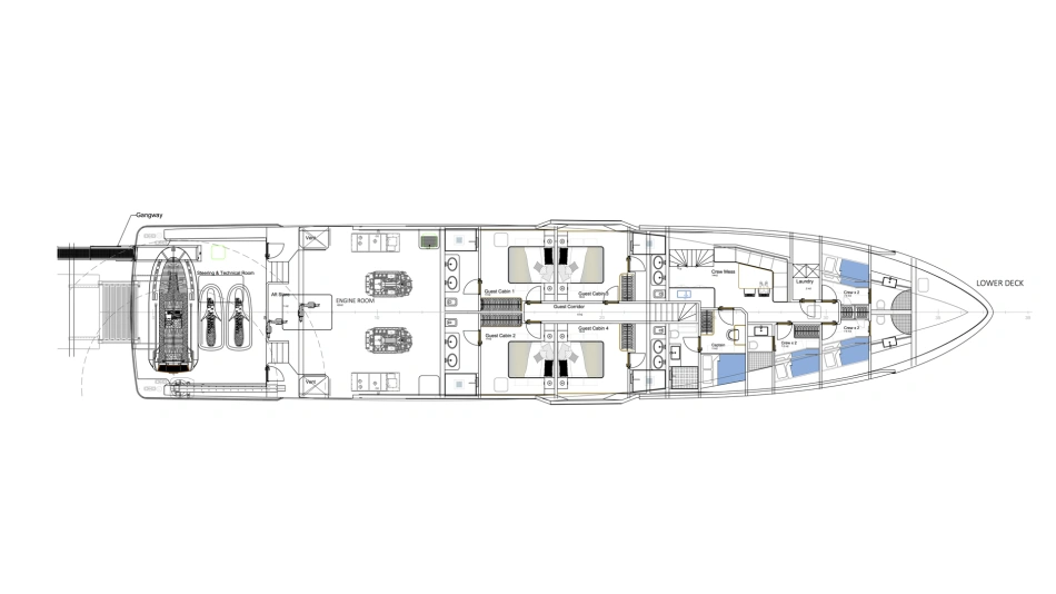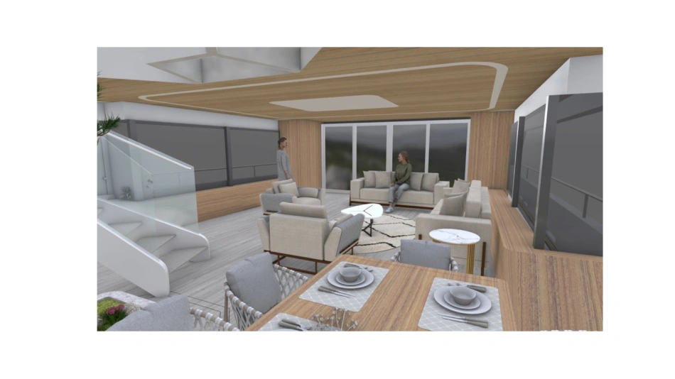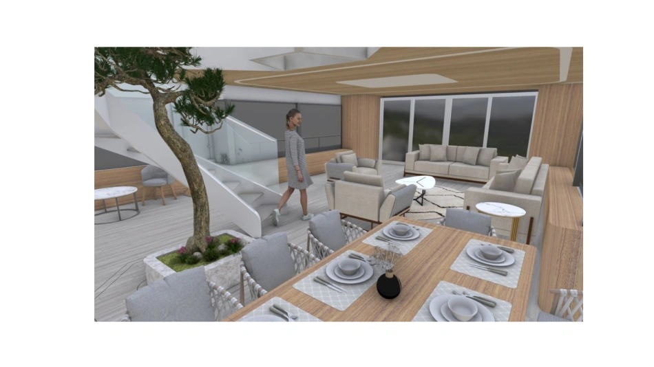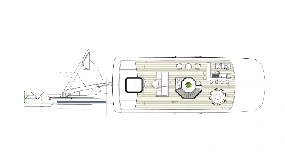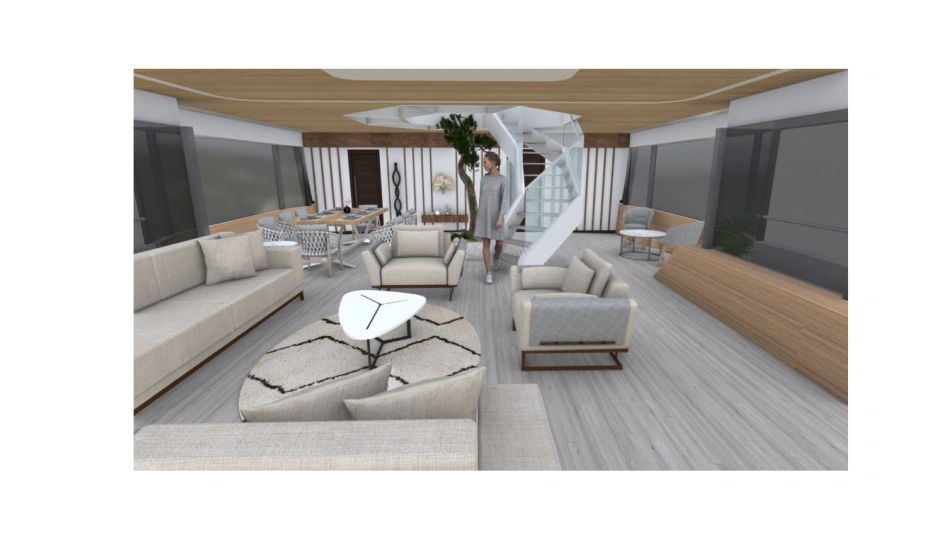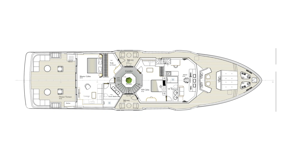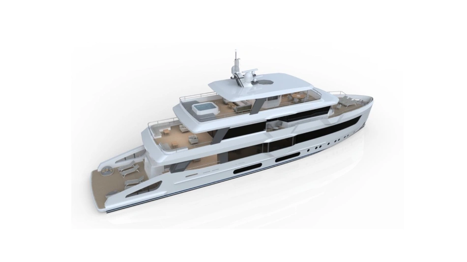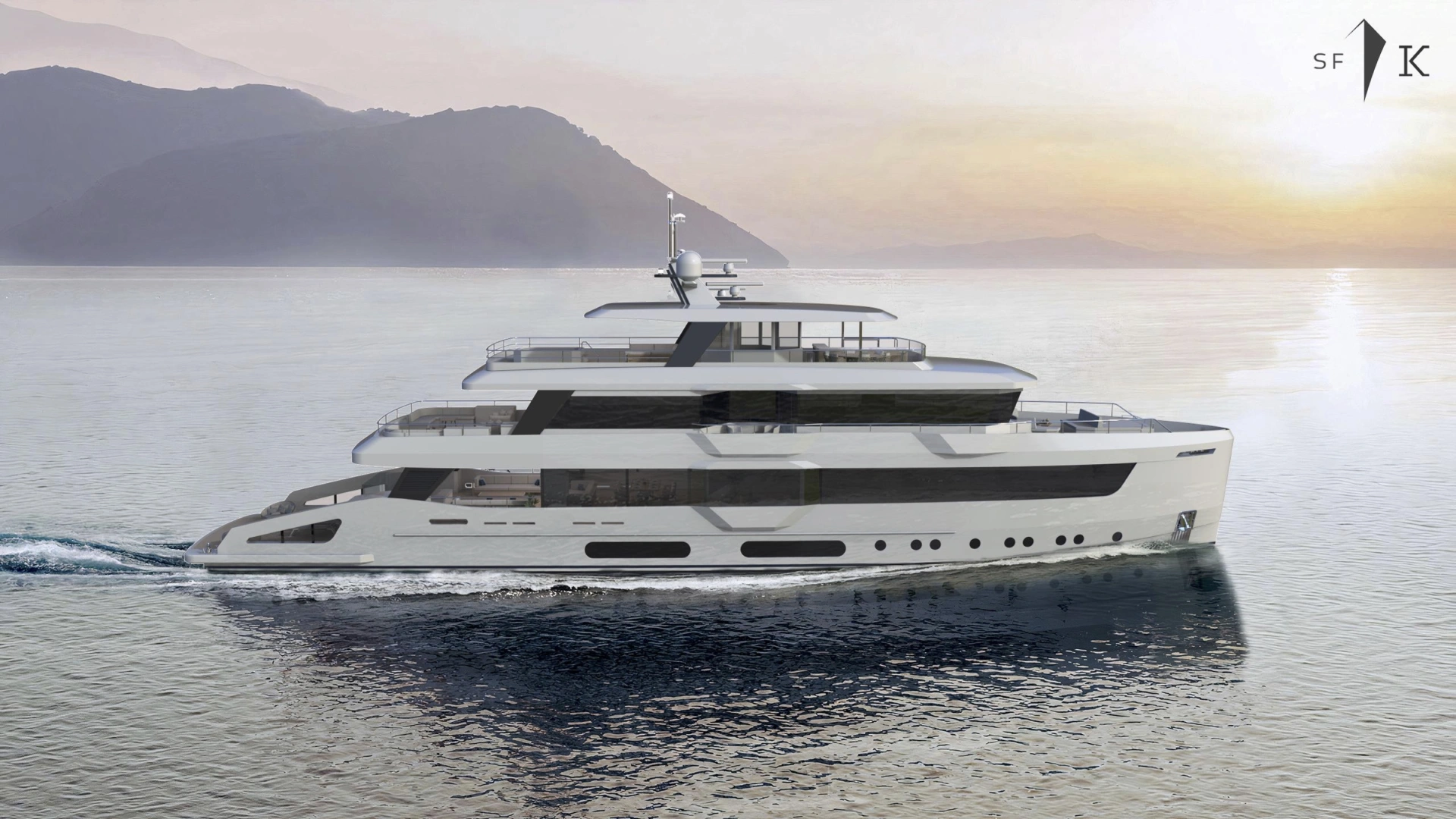 Project Octagon was born under the new concepts of entry level superyacht. 38 meter of amazing spaces that blends together in a unique flow under the main octagonal central stairs. Main deck and sky deck dedicated only for the entertainment with amazing inside/outside facility. Upper deck only for the 2 master and balconies.