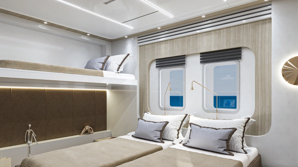 Well balanced in the design and with the not common high ceiling of the salon (approx. 2.4 meter clear height) she gives the impression of a continuity with the sea around.
