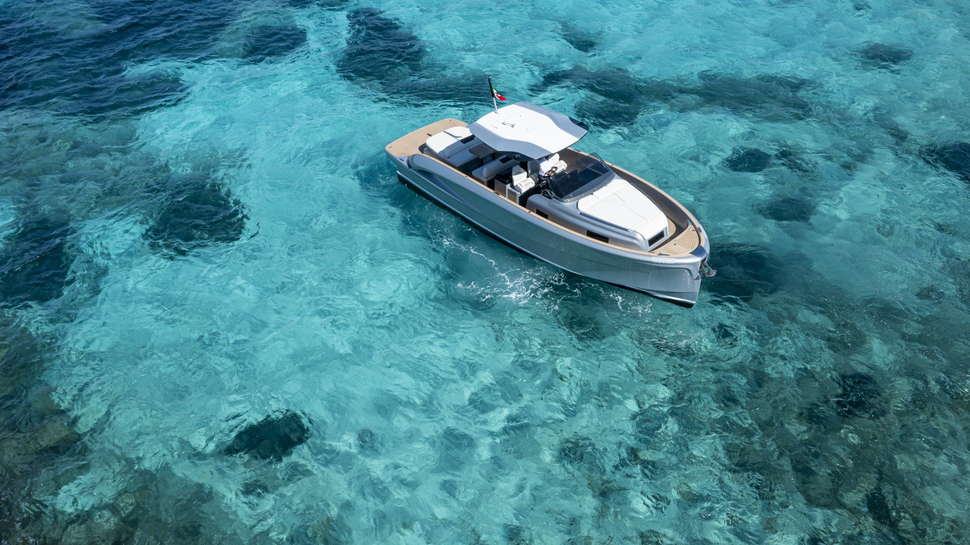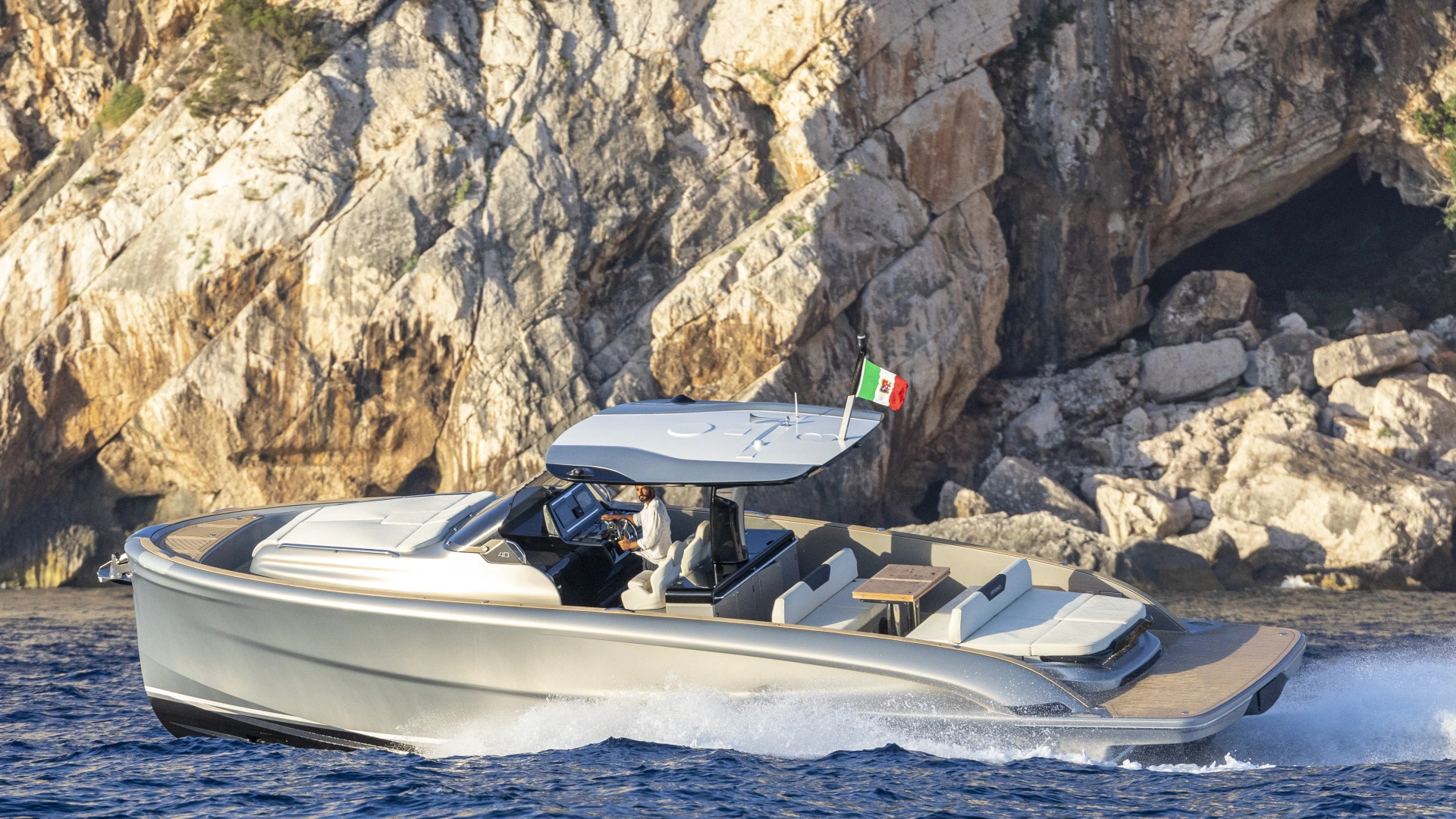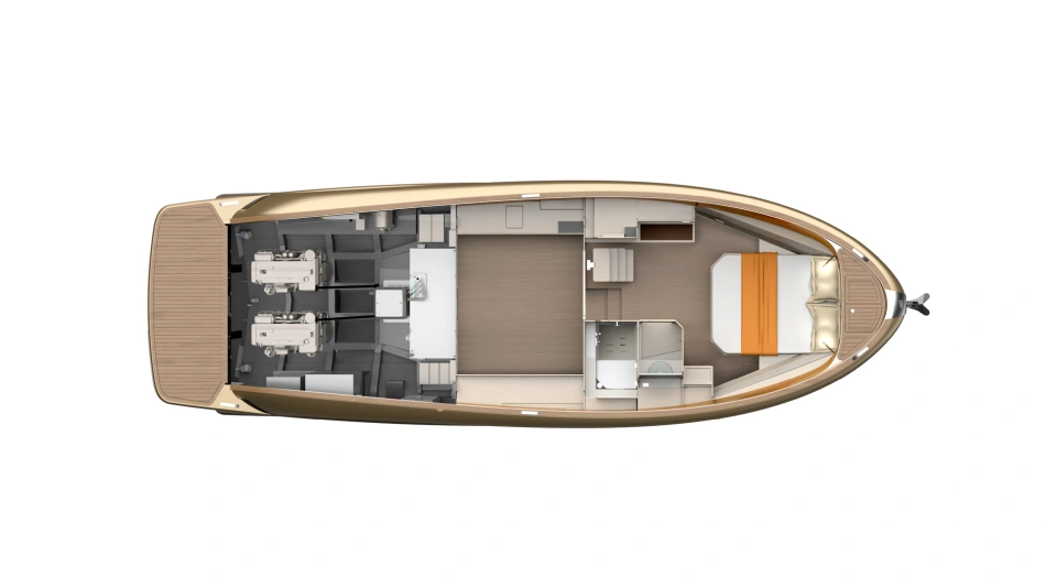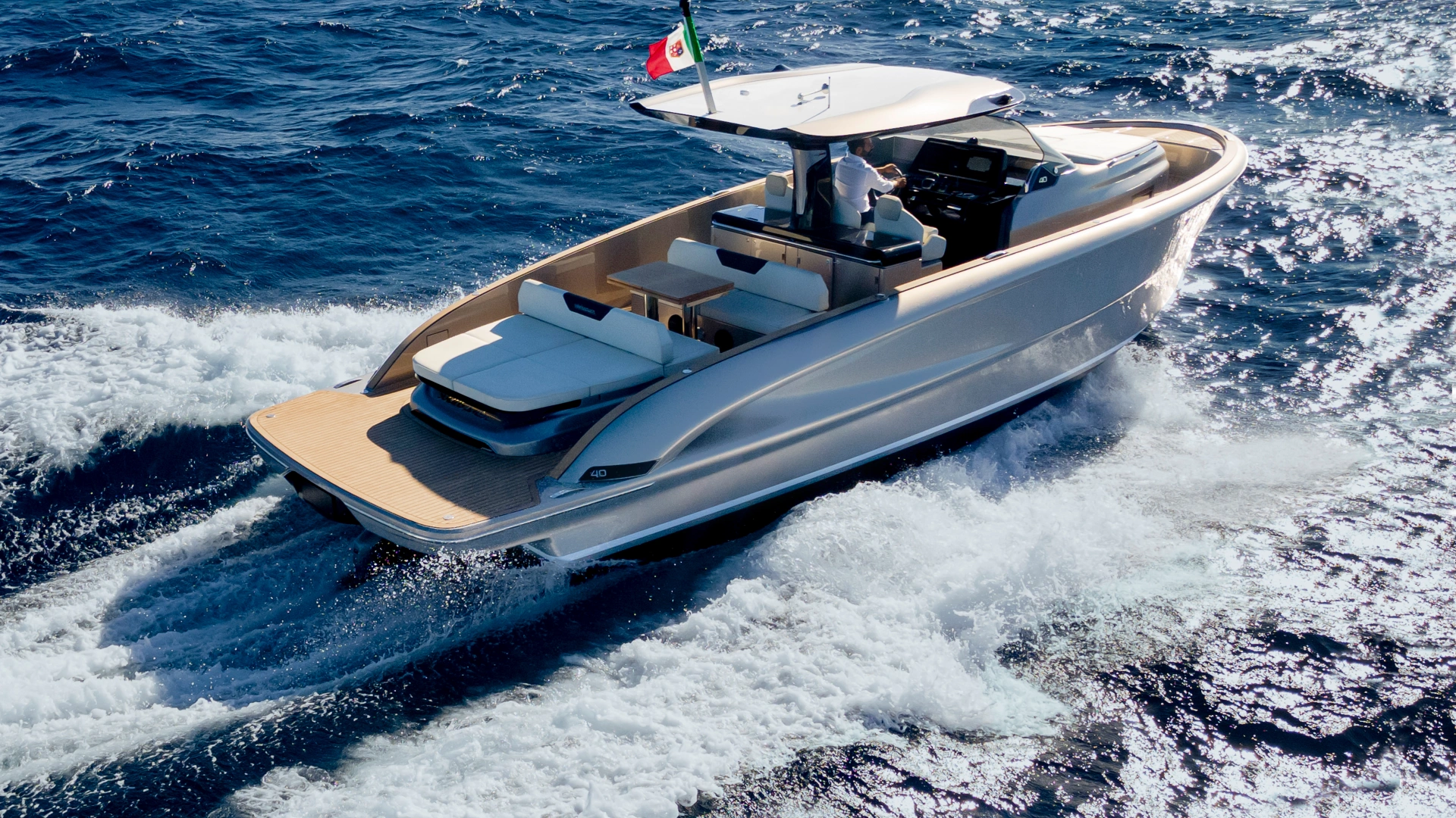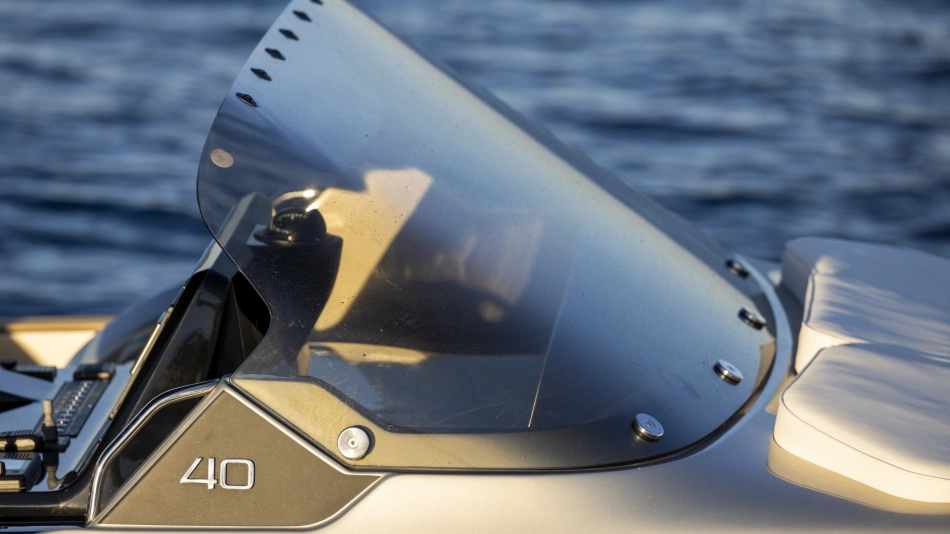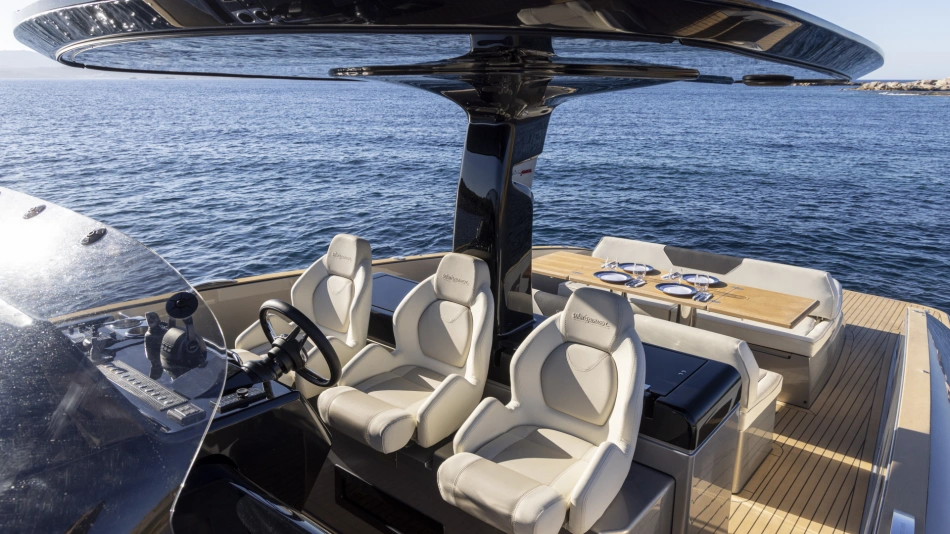 This is the only 40-foot open yacht that features a separate shower area with a glass door.