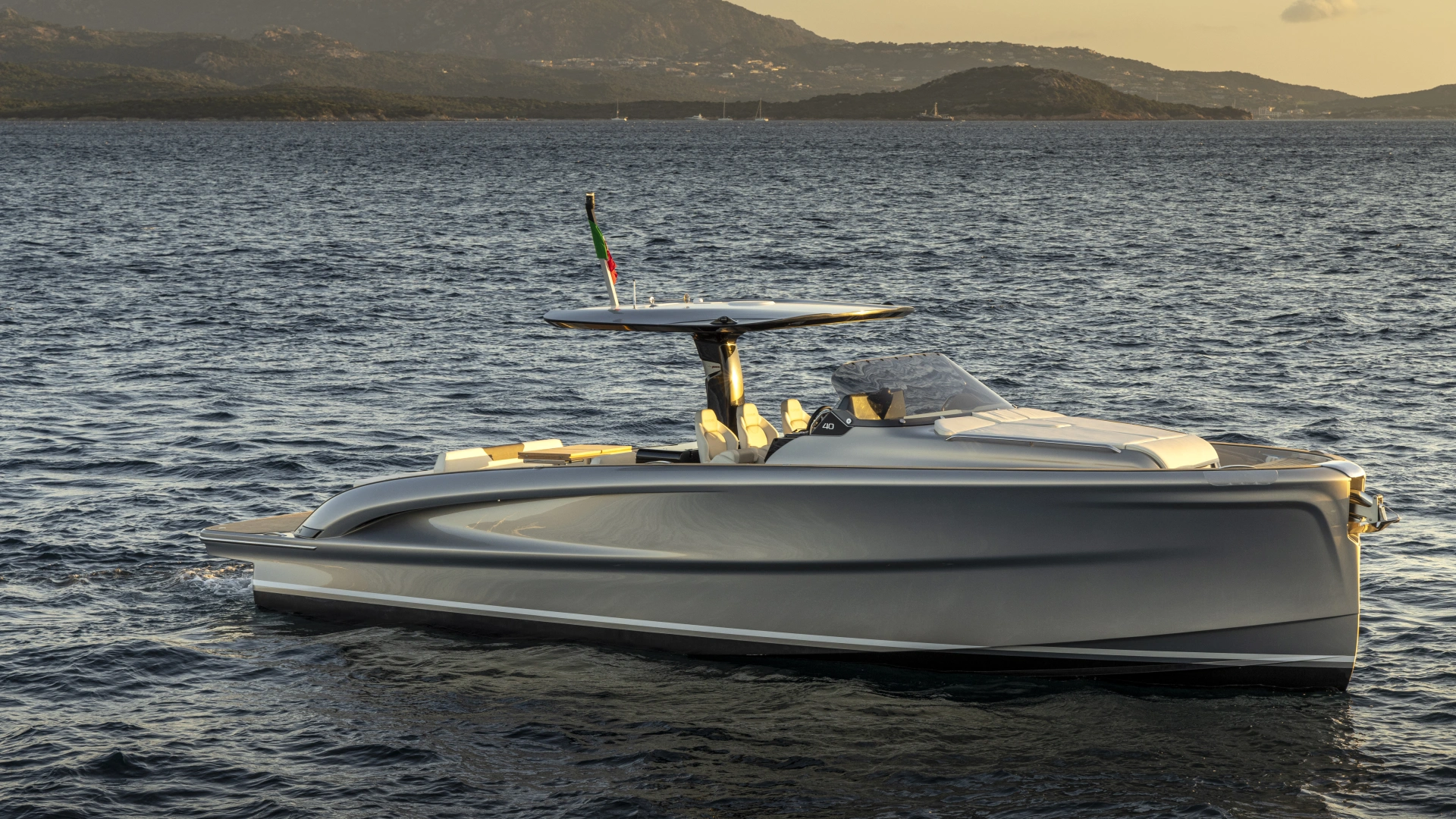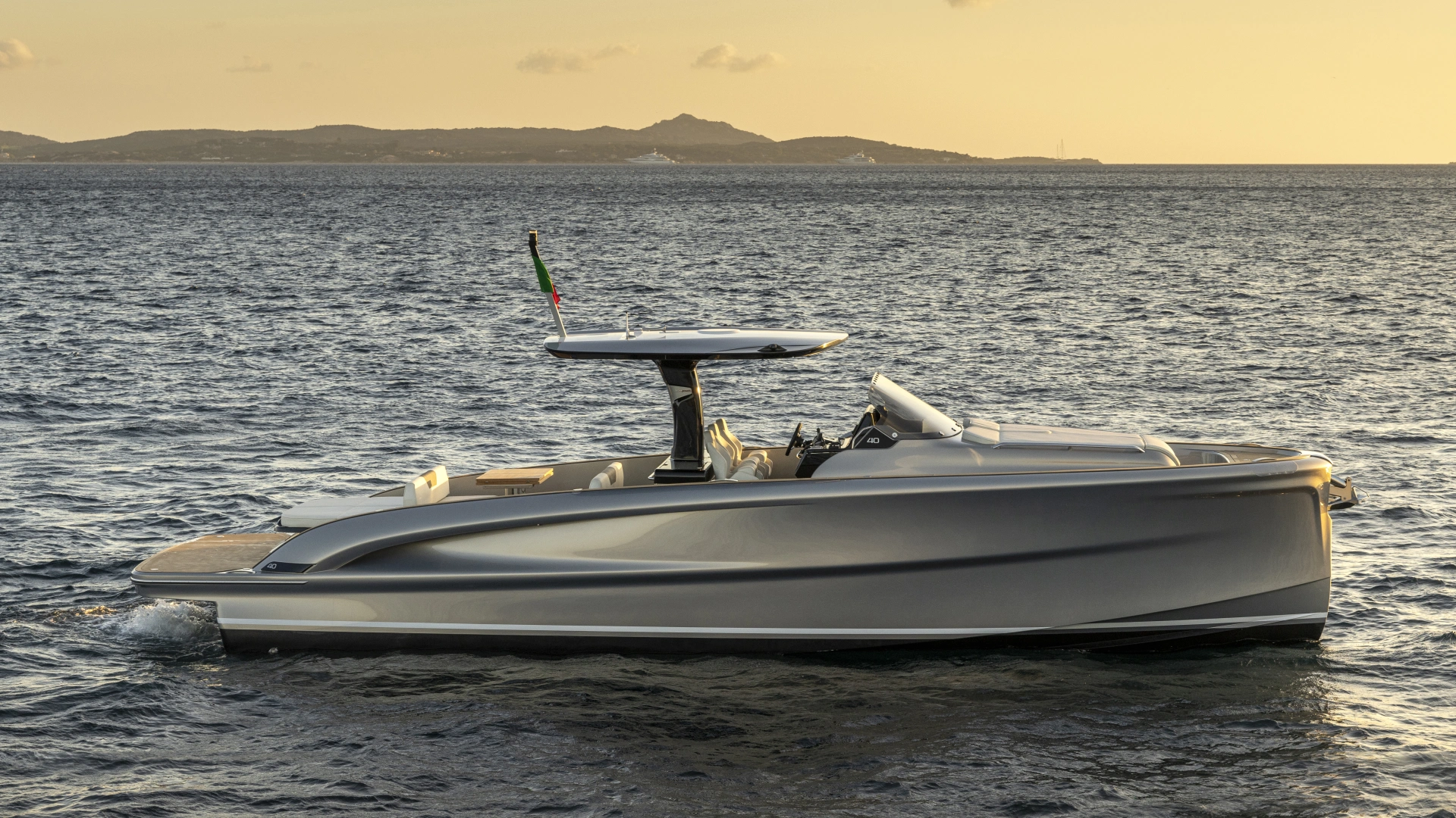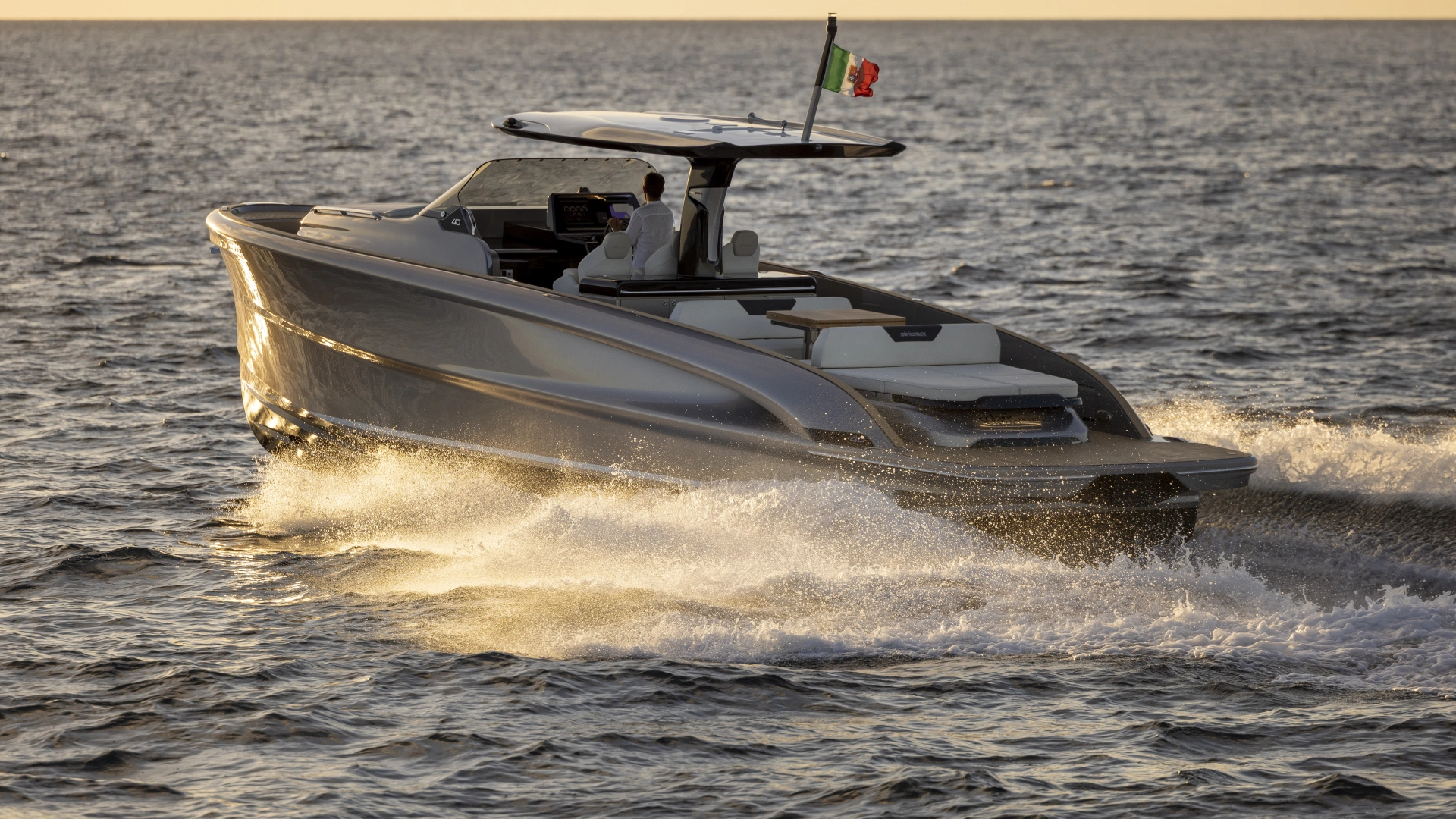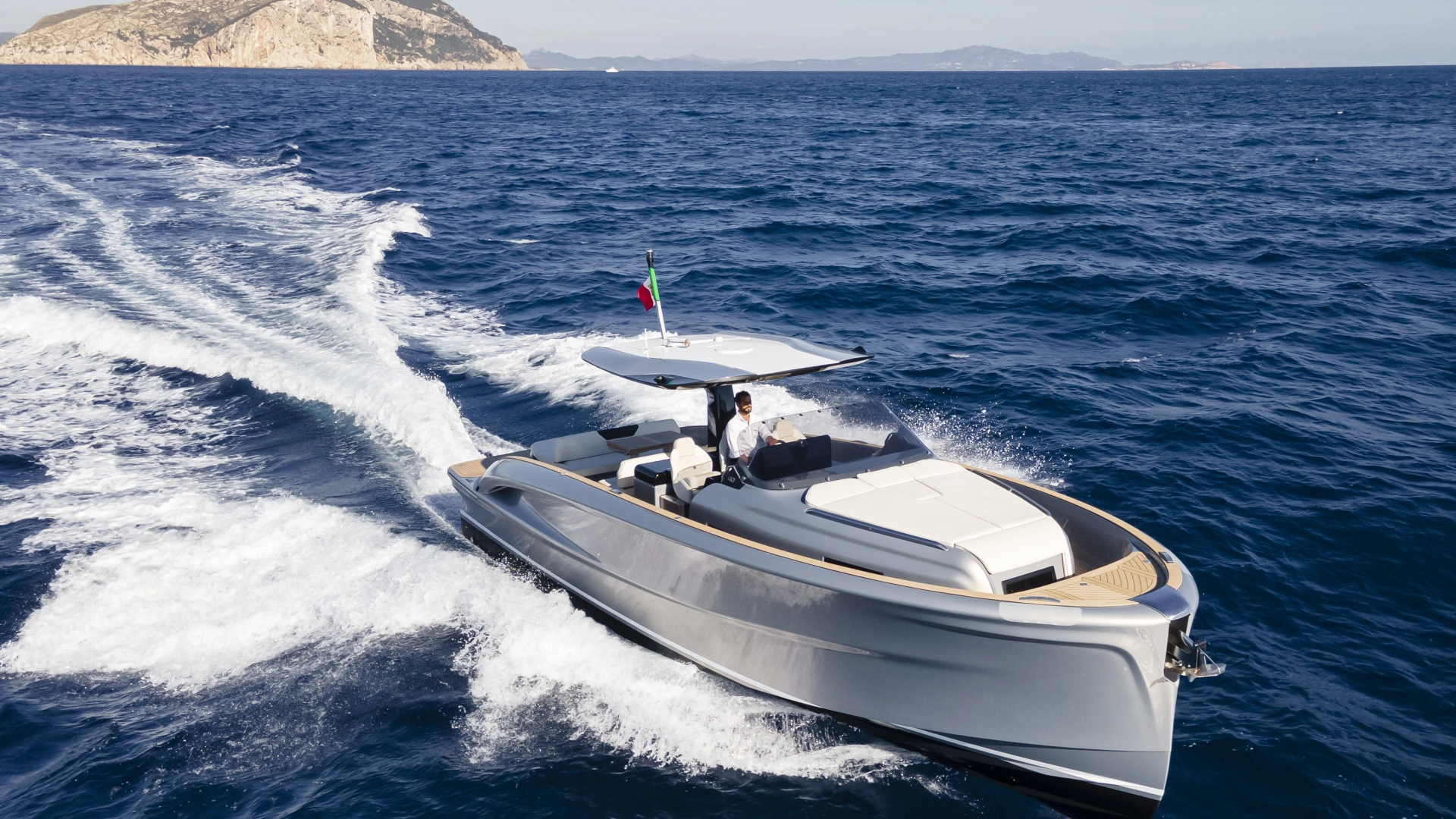 This is the only 40-foot open yacht that features a separate shower area with a glass door.