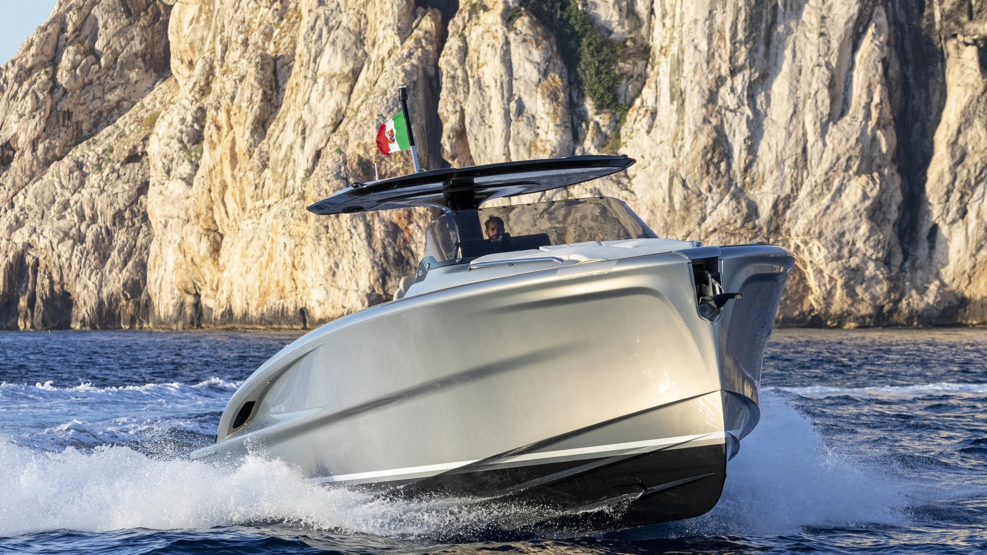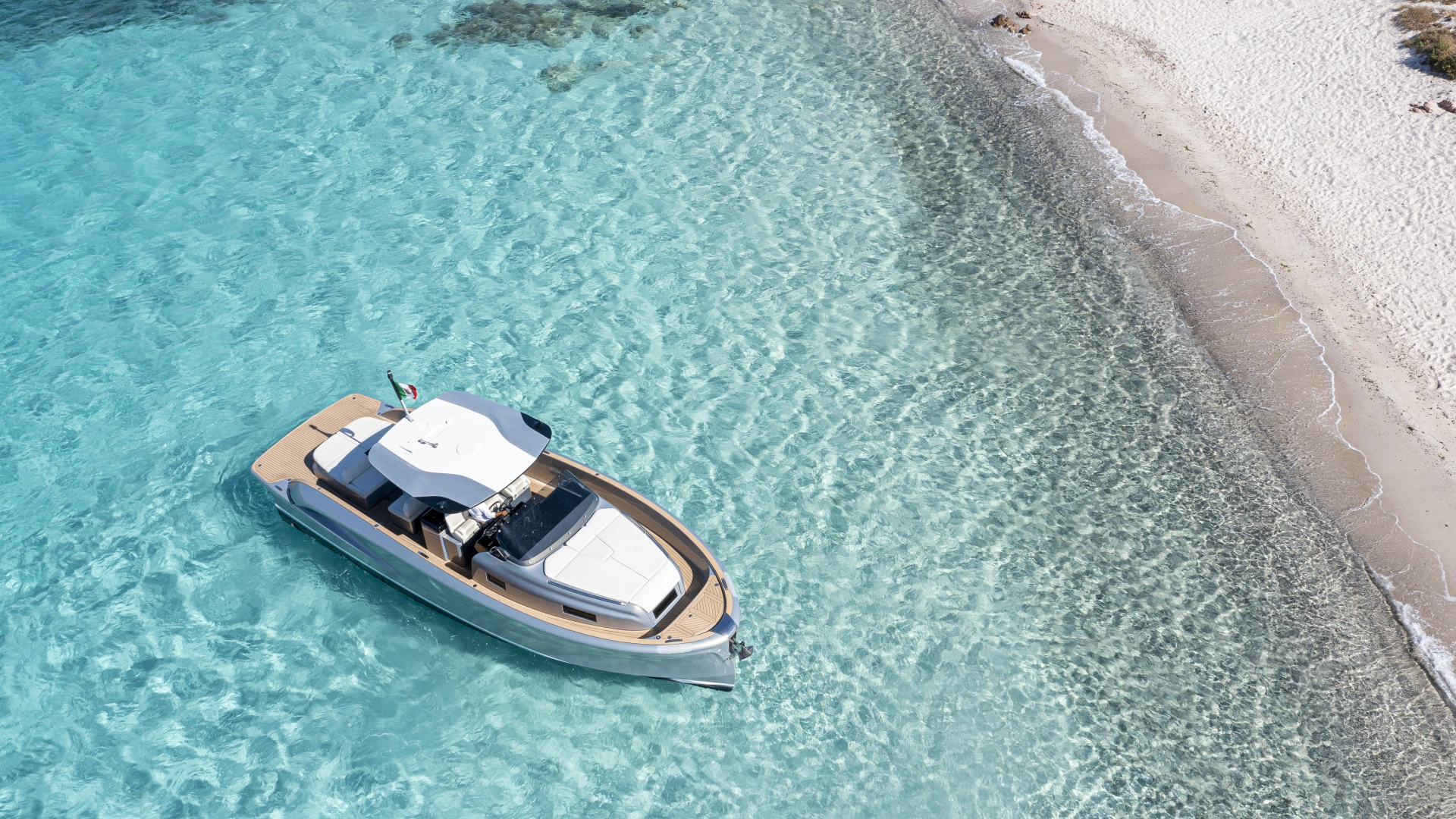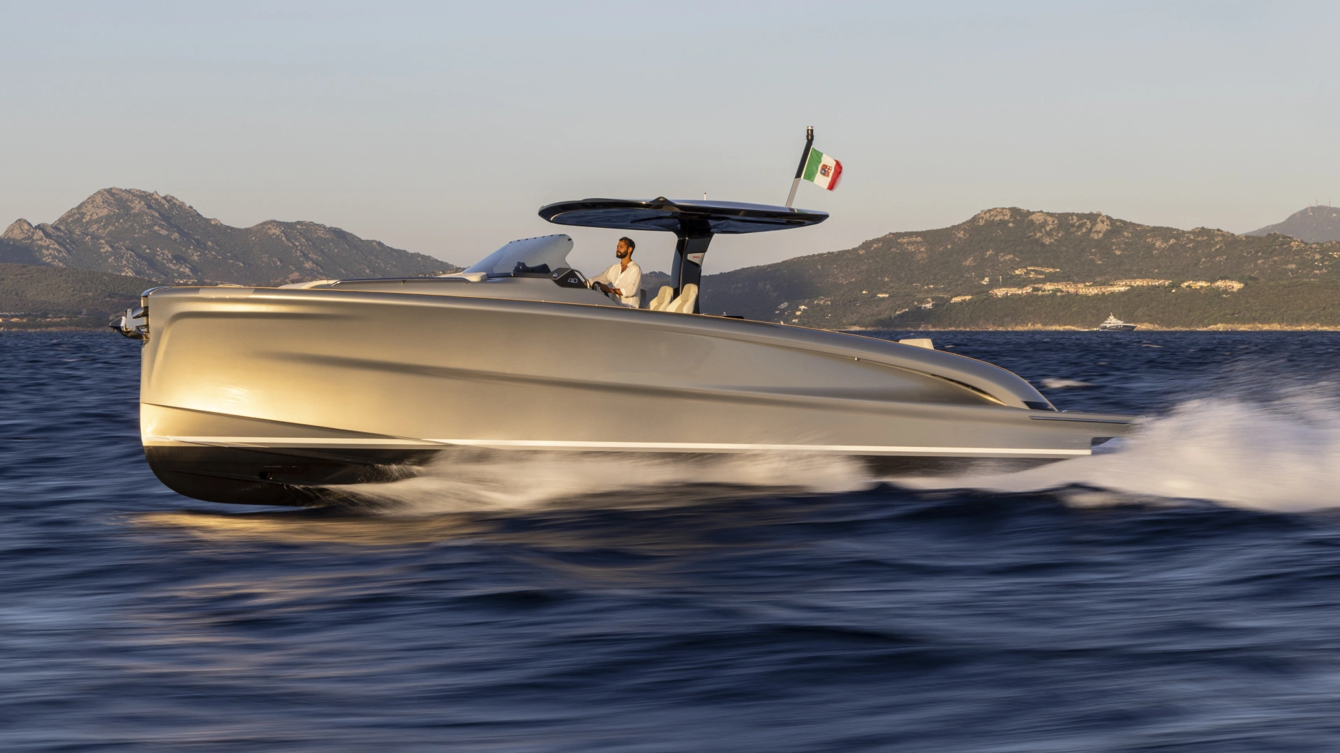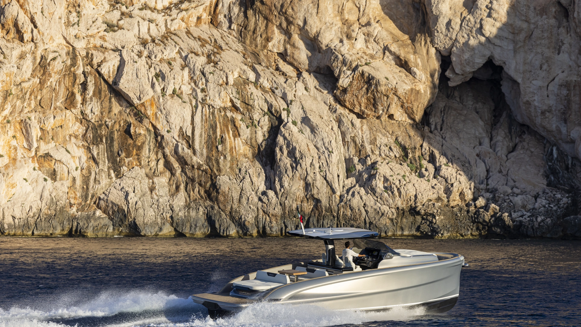 This is the only 40-foot open yacht that features a separate shower area with a glass door.