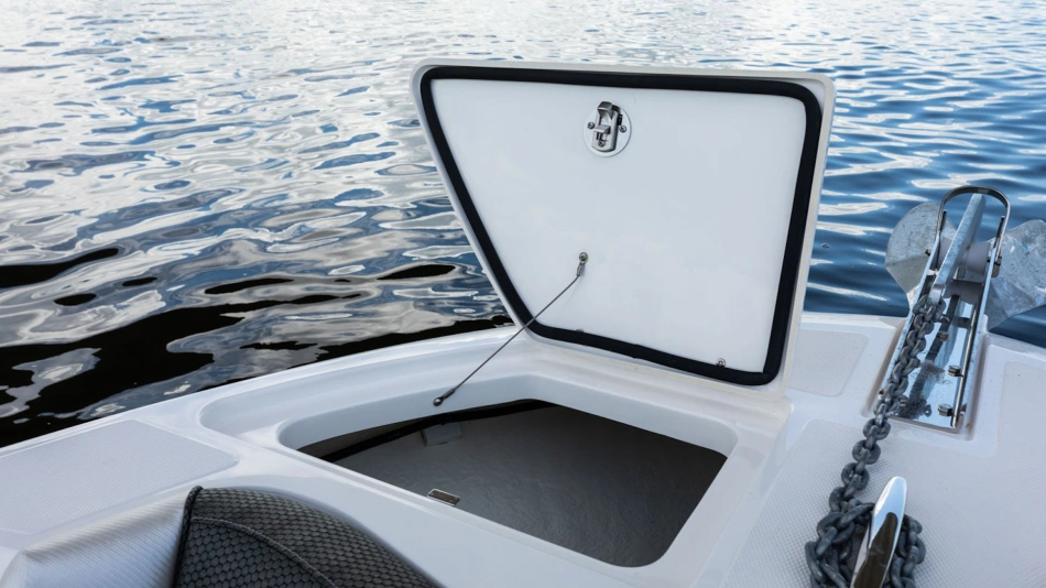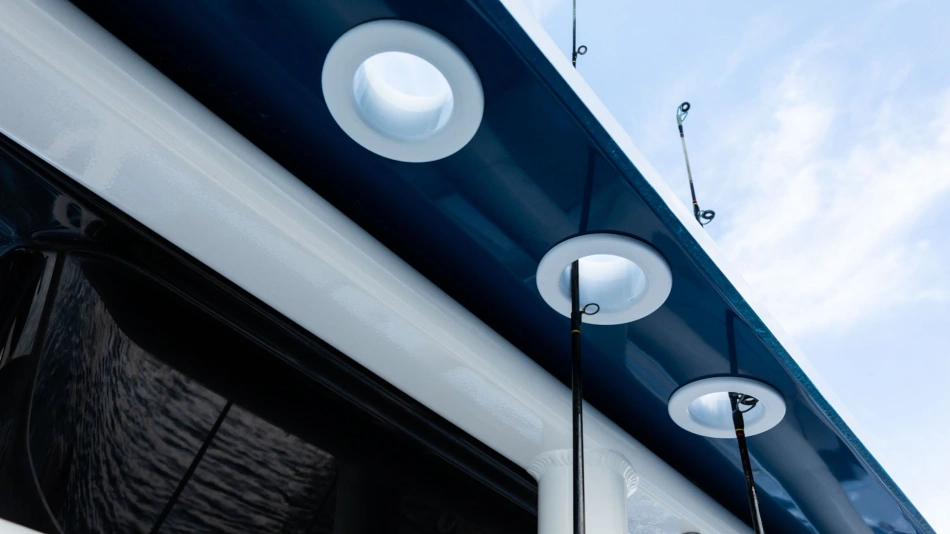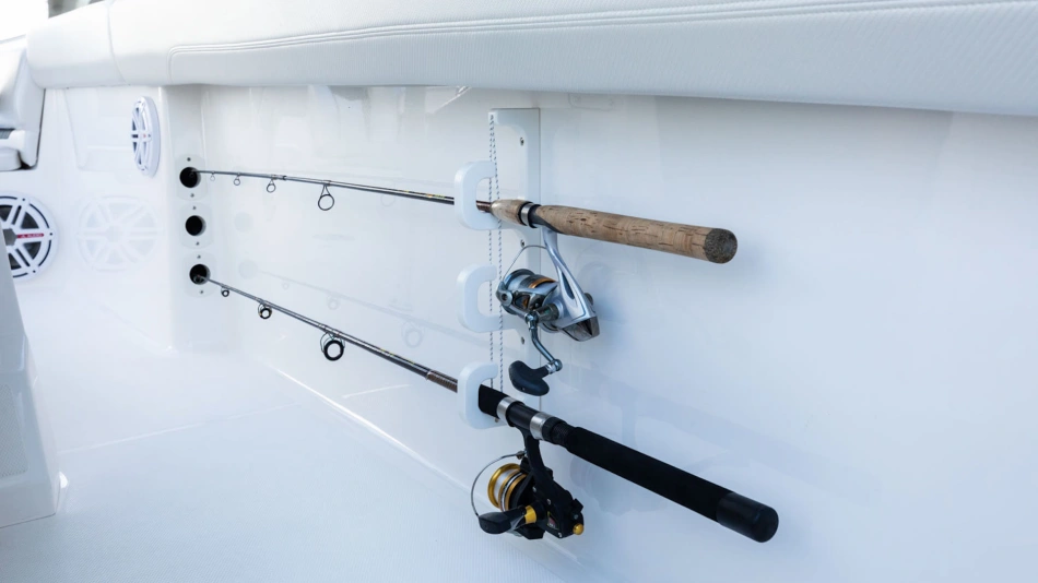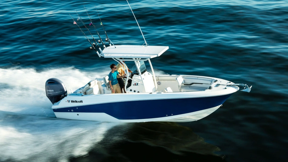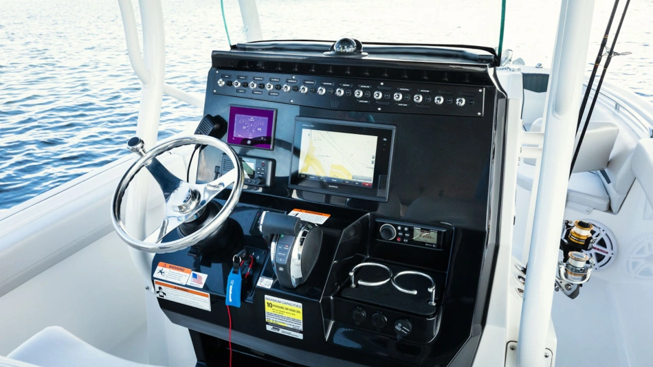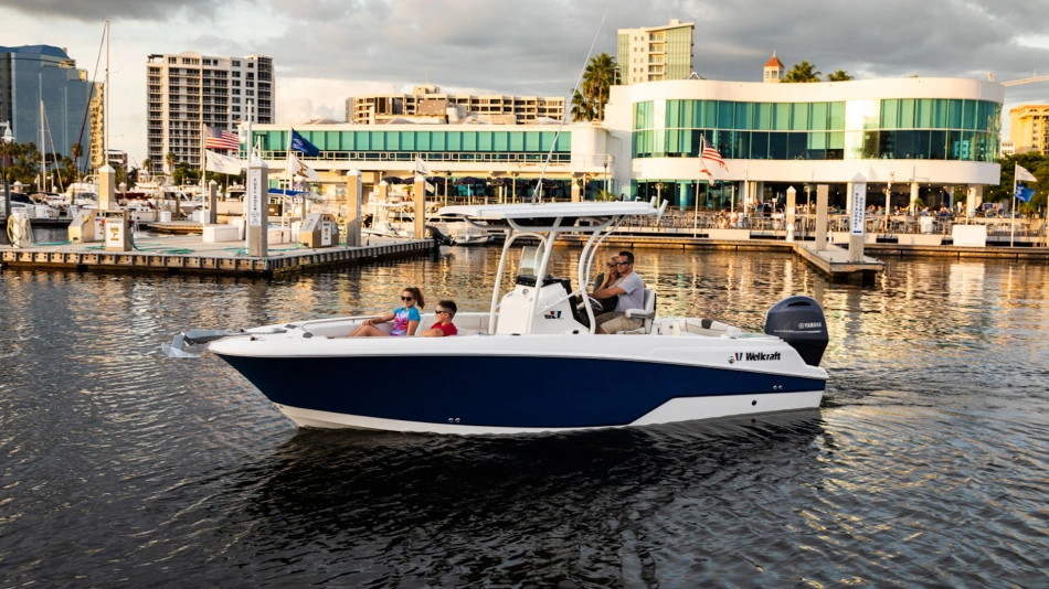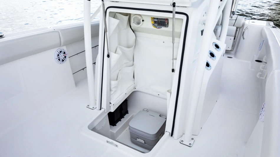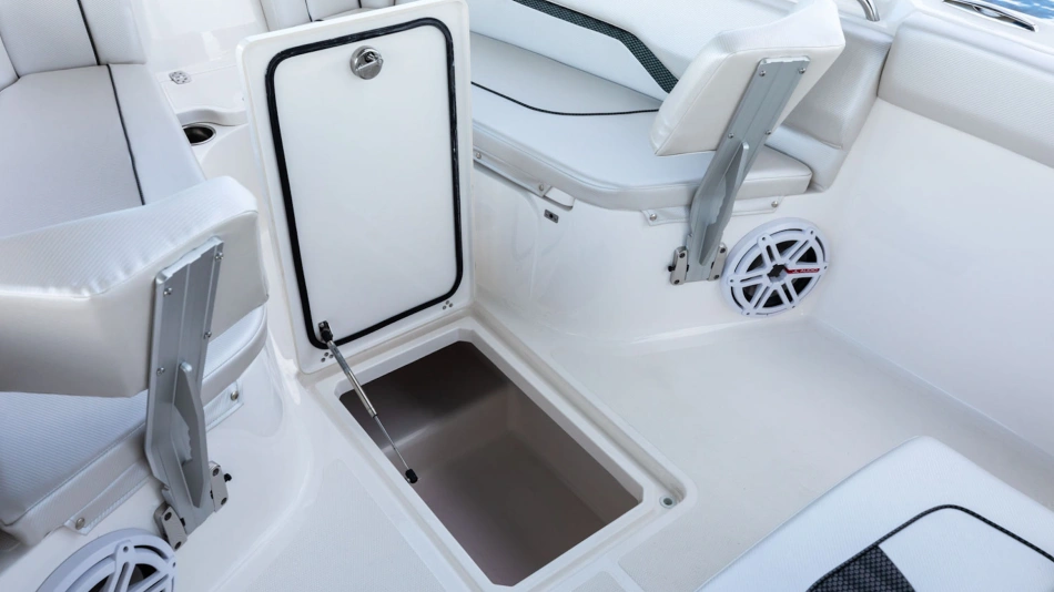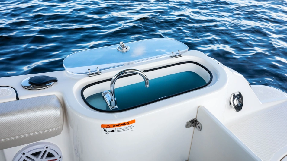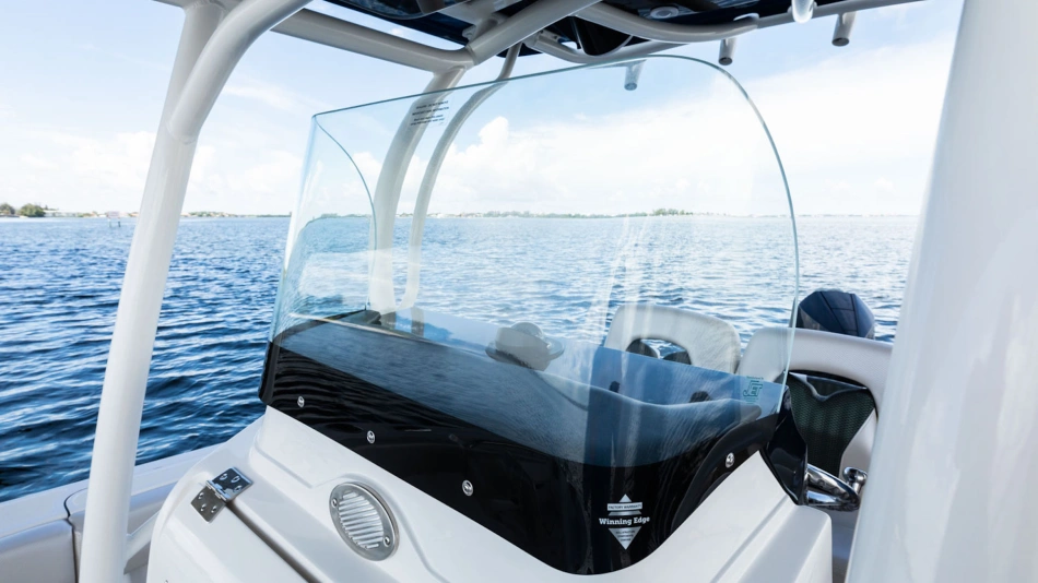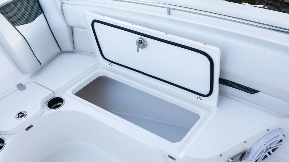 Whatever your passion: luxury fishing, family boating, or offshore cruising, the 242F embraces it all. Powered by single or dual applications, this 24'4" vessel delivers the length and muscle fishermen need when heading offshore—a textbook ride only possible through a high freeboard, deep hull, and an articulated bow flare.