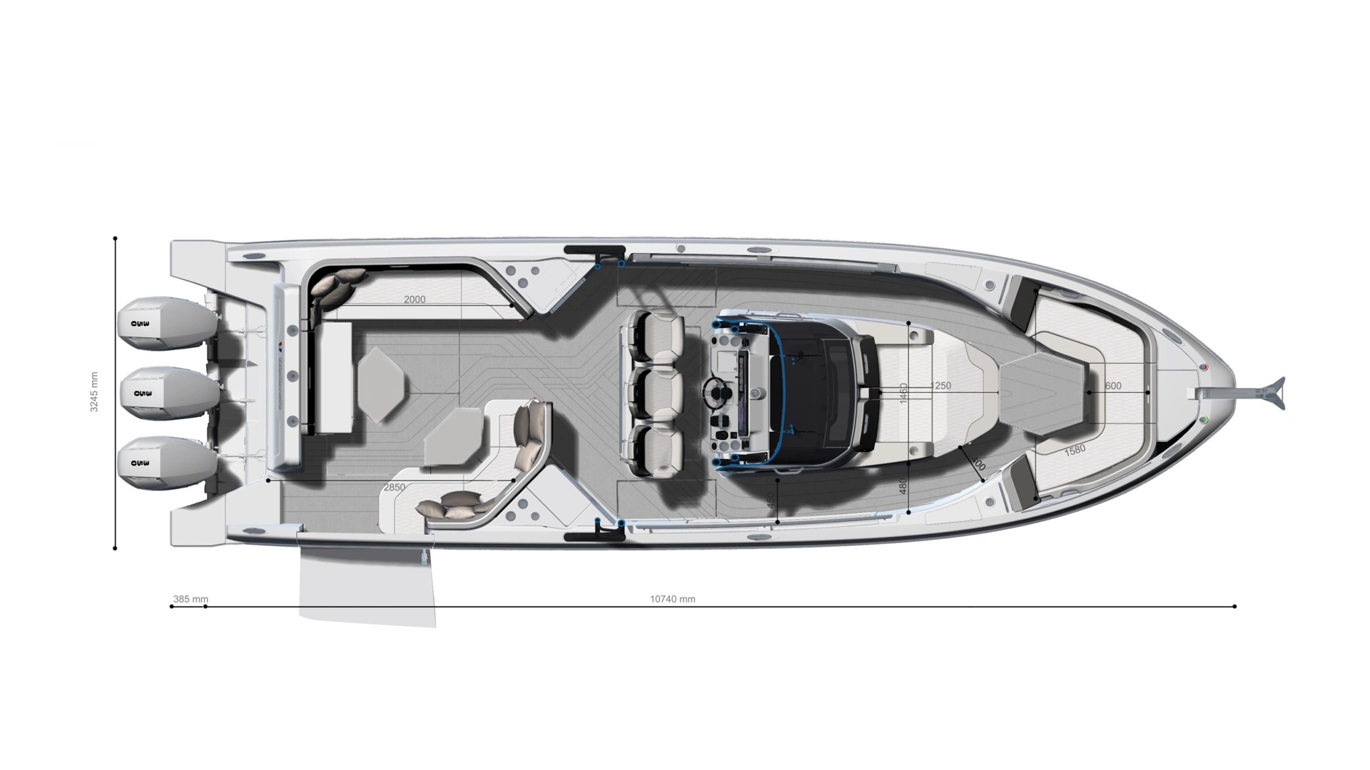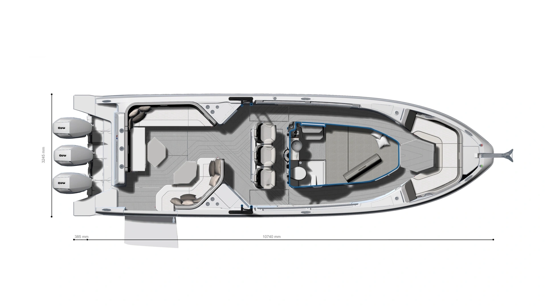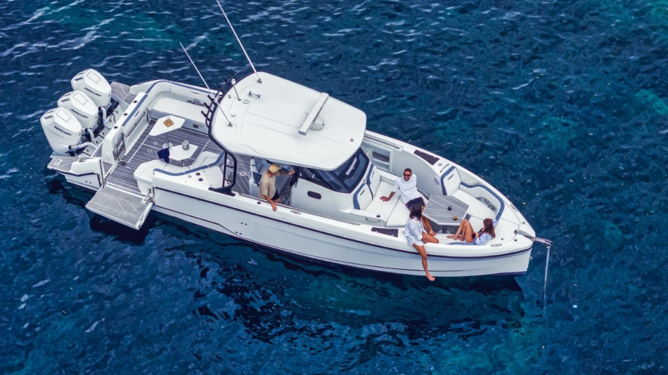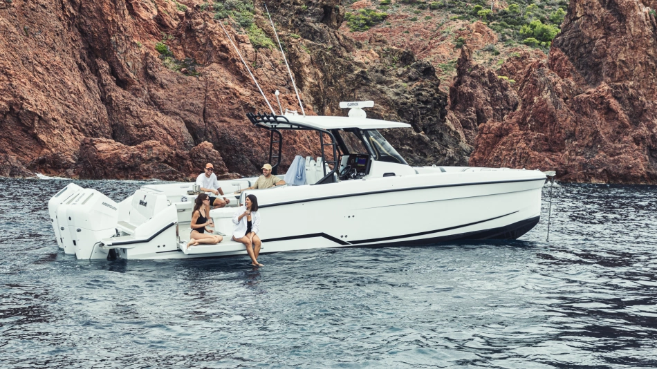 Equipped with a top-mounted tow point and ample storage spaces, it is the ideal center console for watersport enthusiasts. This offshore performer also combines exceptional power with optimized weight, delivering unrivalled speed and agility.