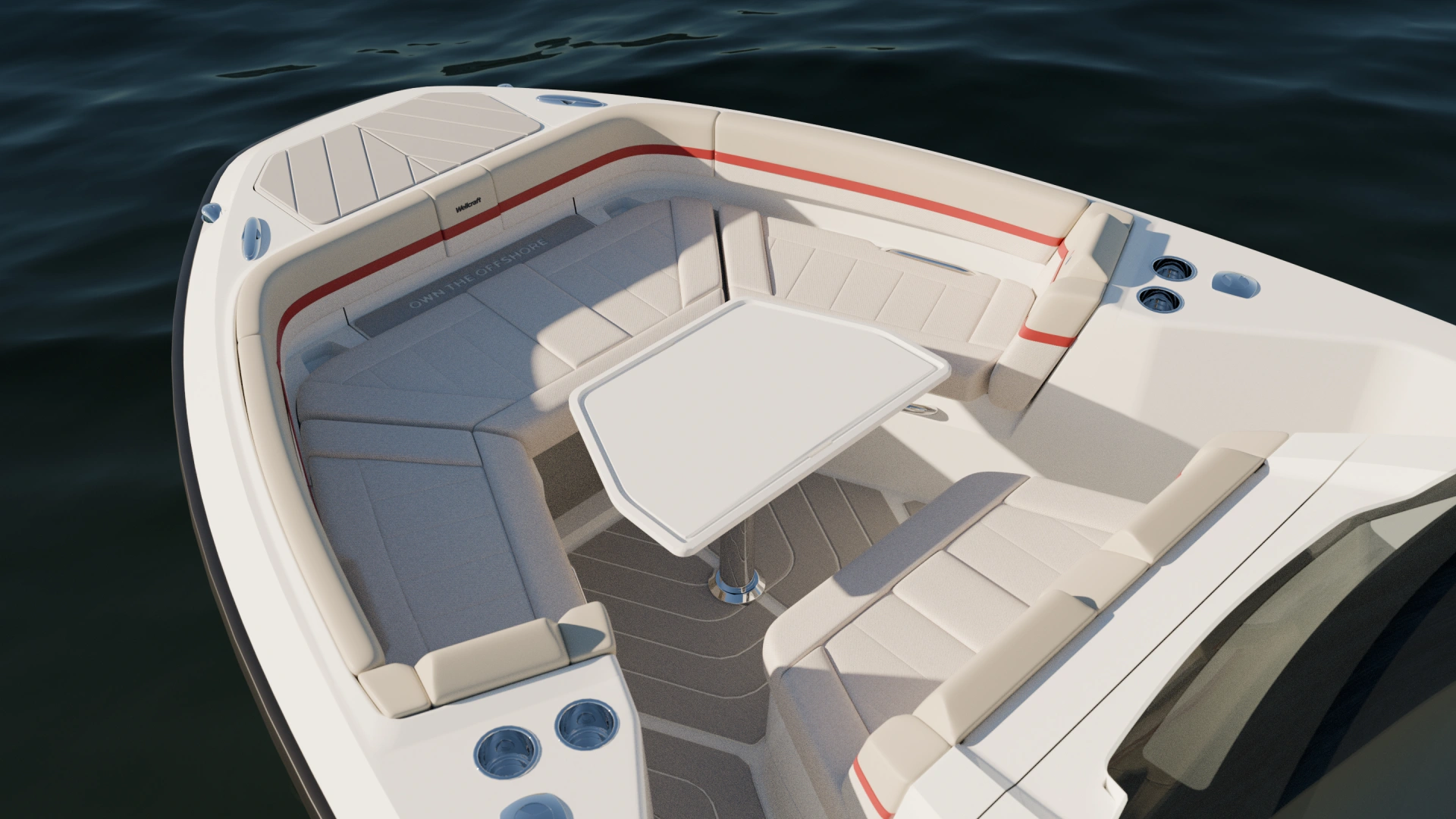The aft cockpit adapts to every program with three dedicated layouts: Lounge (up to 13 seats), Barracuda (fishing-focused), or Relax (enjoyable sunpad). The Wellcraft 28 Speedster’s sharp profile and iconic Z-line underline its performance-driven identity.