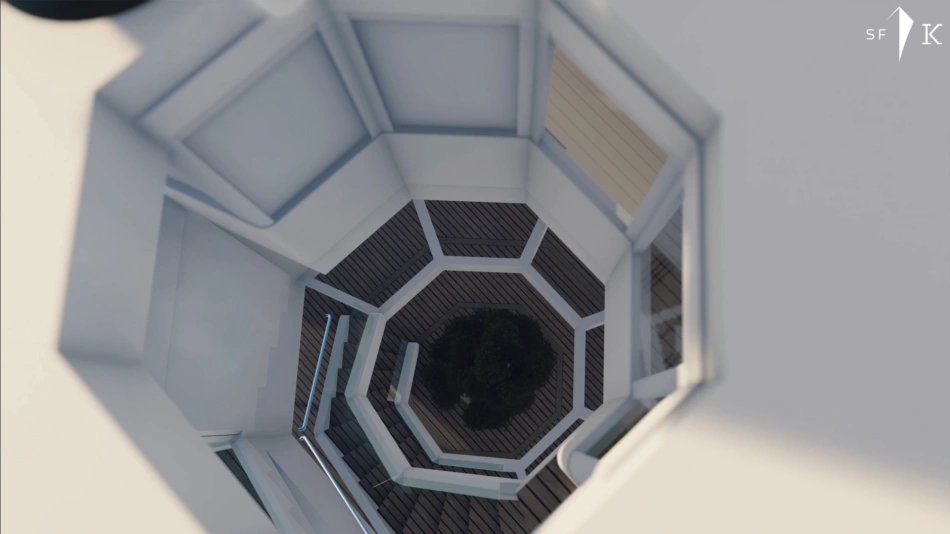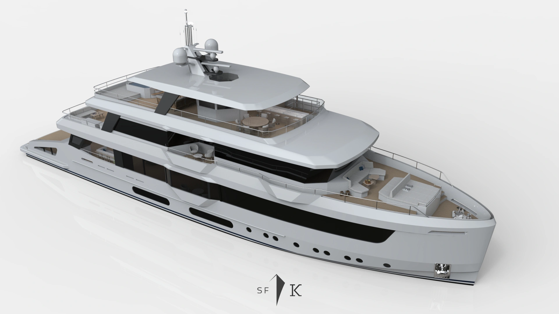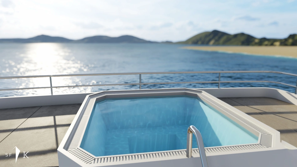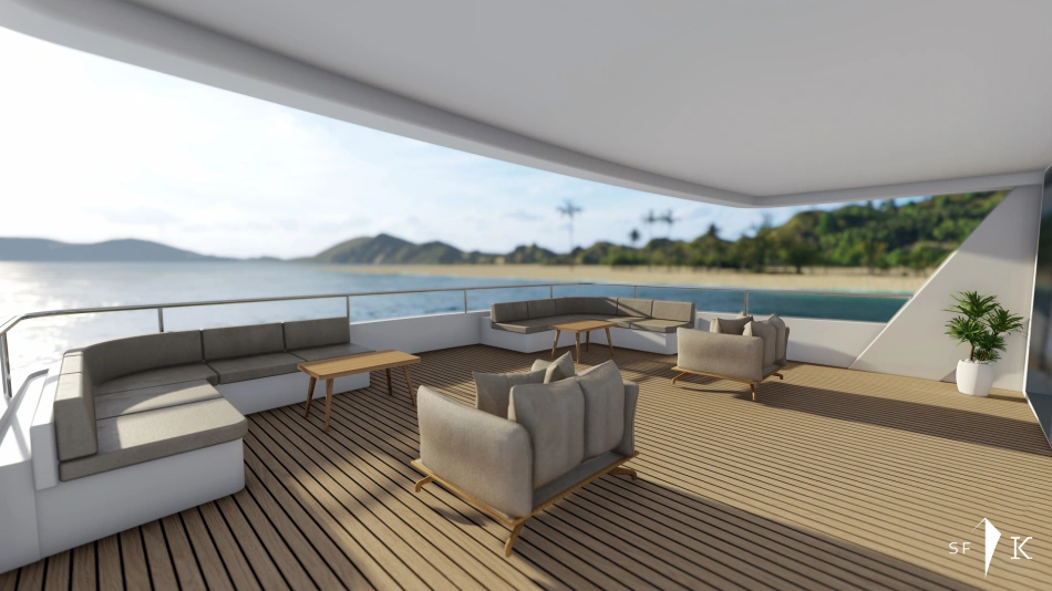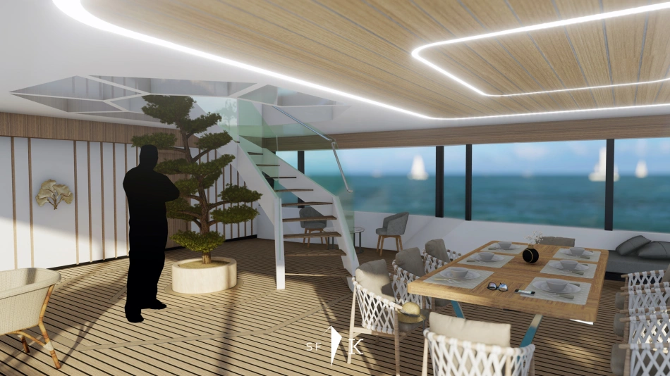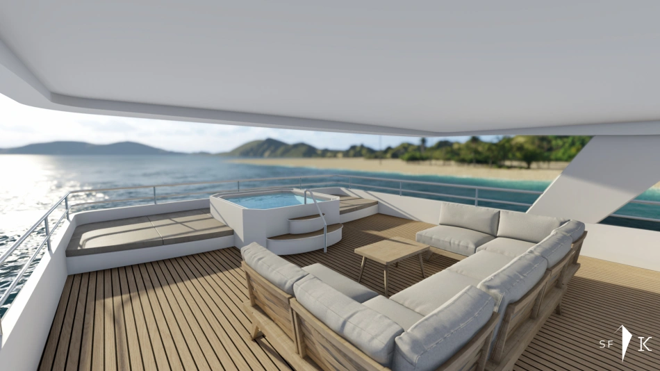 Project Octagon was born under the new concepts of entry level superyacht. 38 meter of amazing spaces that blends together in a unique flow under the main octagonal central stairs. Main deck and sky deck dedicated only for the entertainment with amazing inside/outside facility. Upper deck only for the 2 master and balconies.