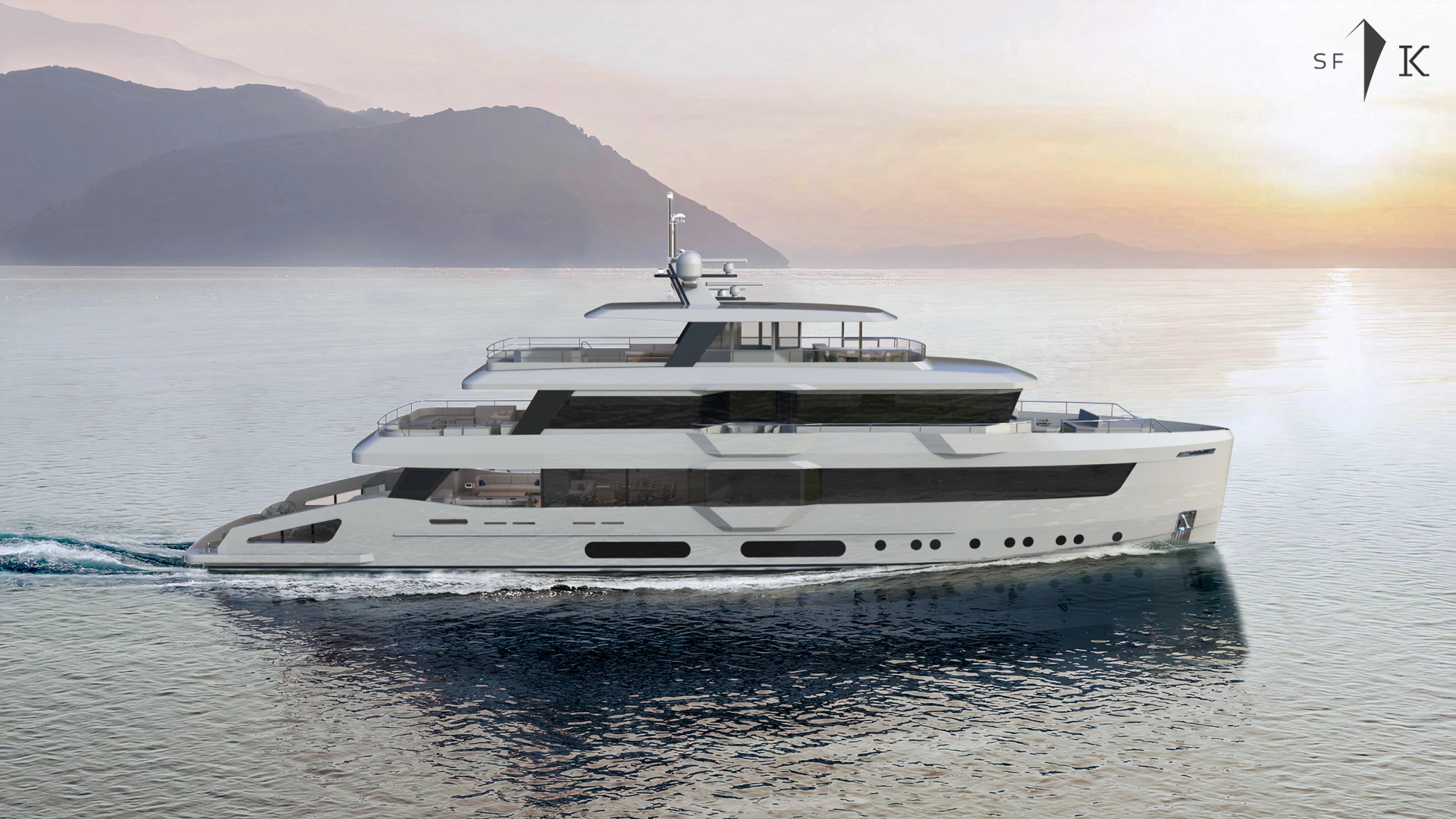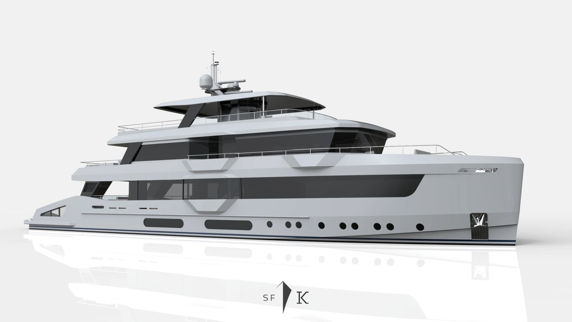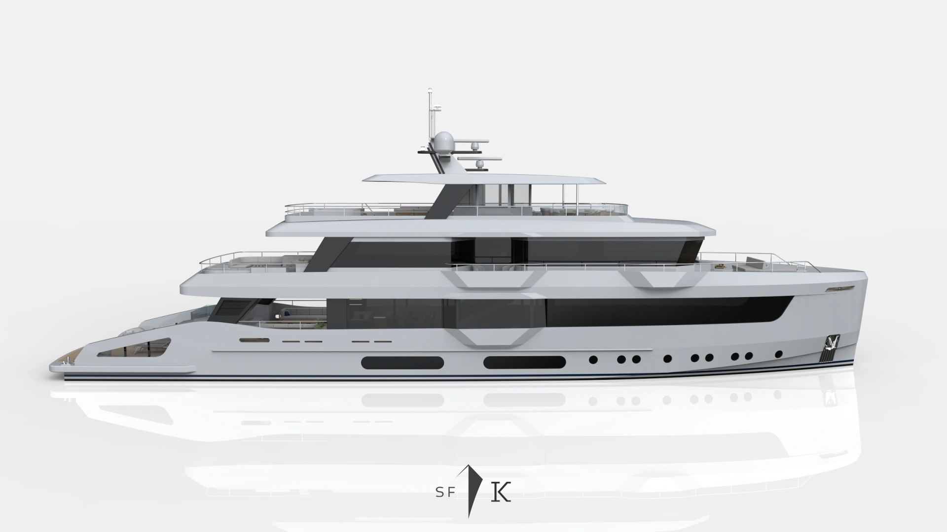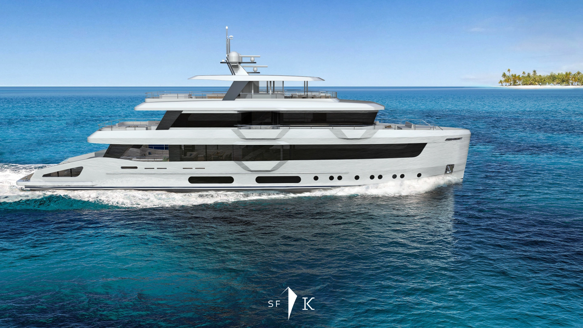 Project Octagon was born under the new concepts of entry level superyacht. 38 meter of amazing spaces that blends together in a unique flow under the main octagonal central stairs. Main deck and sky deck dedicated only for the entertainment with amazing inside/outside facility. Upper deck only for the 2 master and balconies.