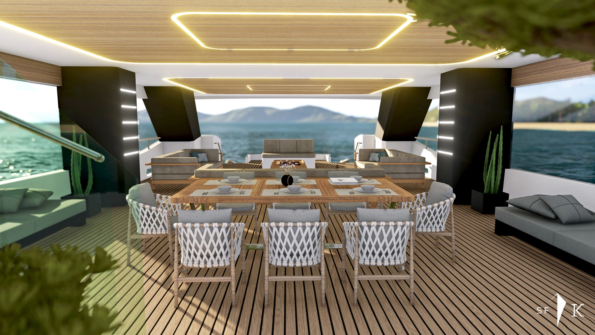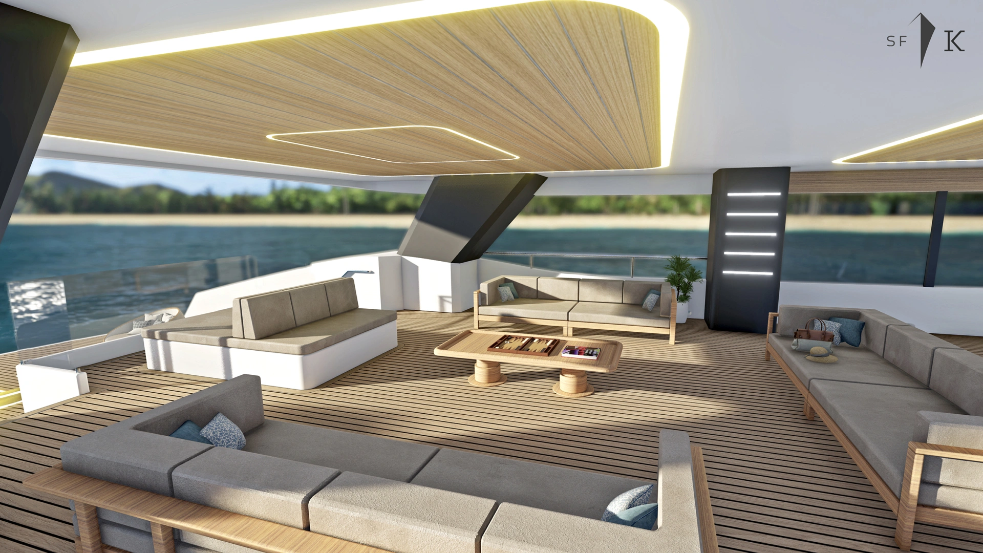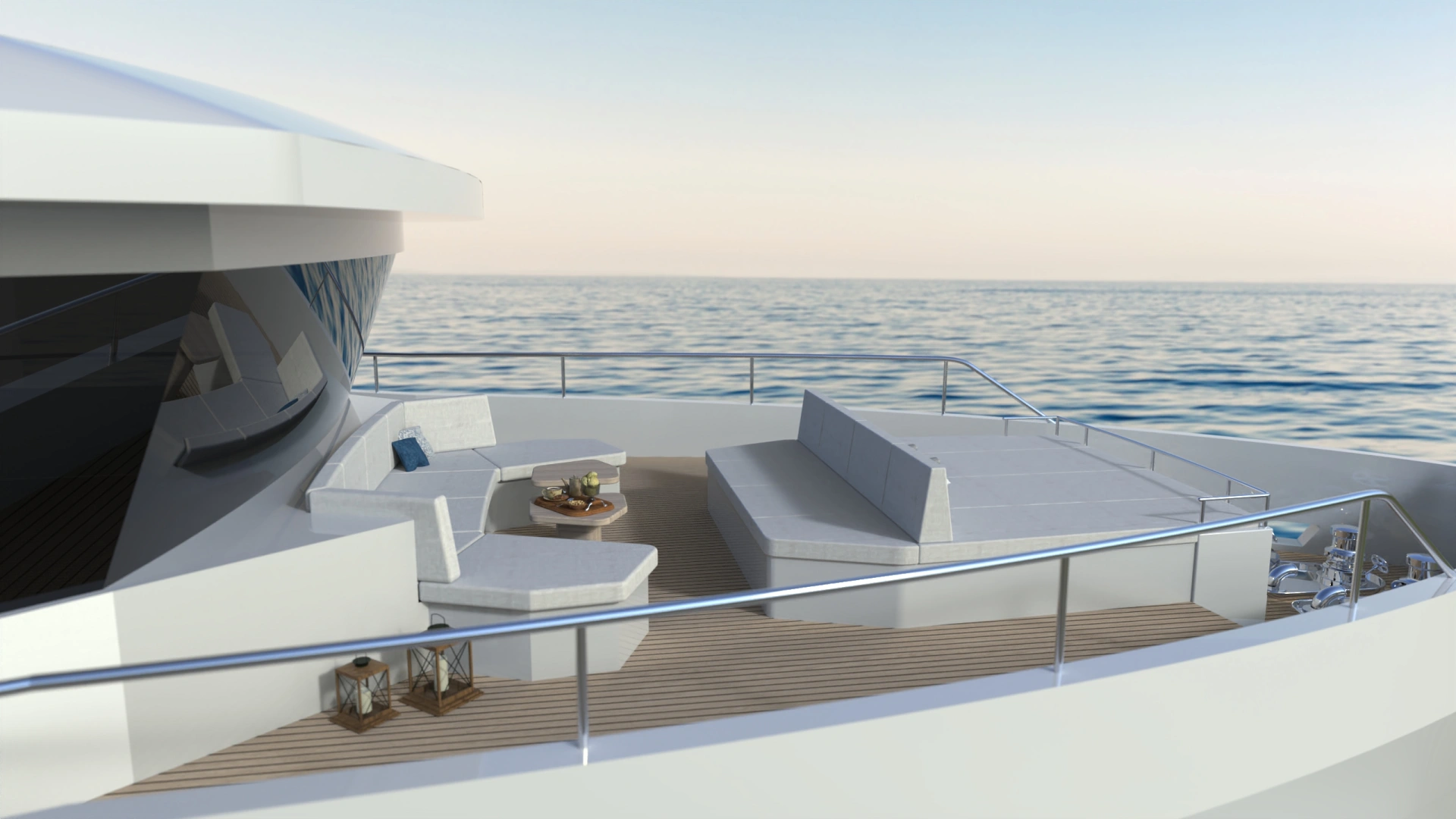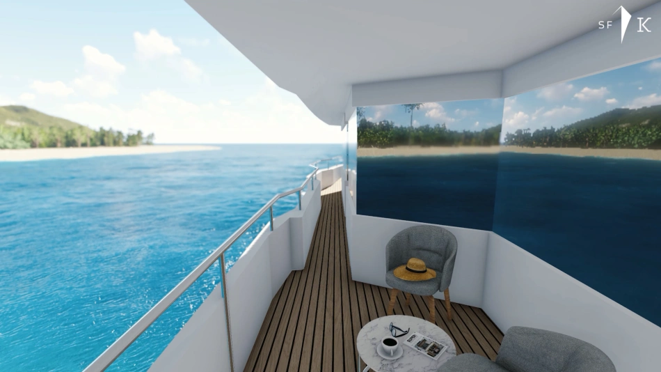 Project Octagon was born under the new concepts of entry level superyacht. 38 meter of amazing spaces that blends together in a unique flow under the main octagonal central stairs. Main deck and sky deck dedicated only for the entertainment with amazing inside/outside facility. Upper deck only for the 2 master and balconies.